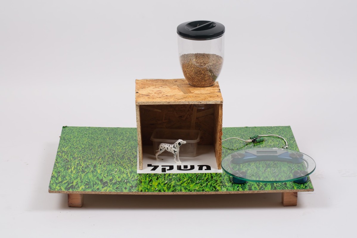 בראש העמוד: הפרויקט של גיא פרץ, דניאל ברודסקי ויוחאי אמסילי המציג מתקן אוטומטי להאכלת כלבים ומעקב אחר התפתחותם (צילום: אחיקם בן יוסף)